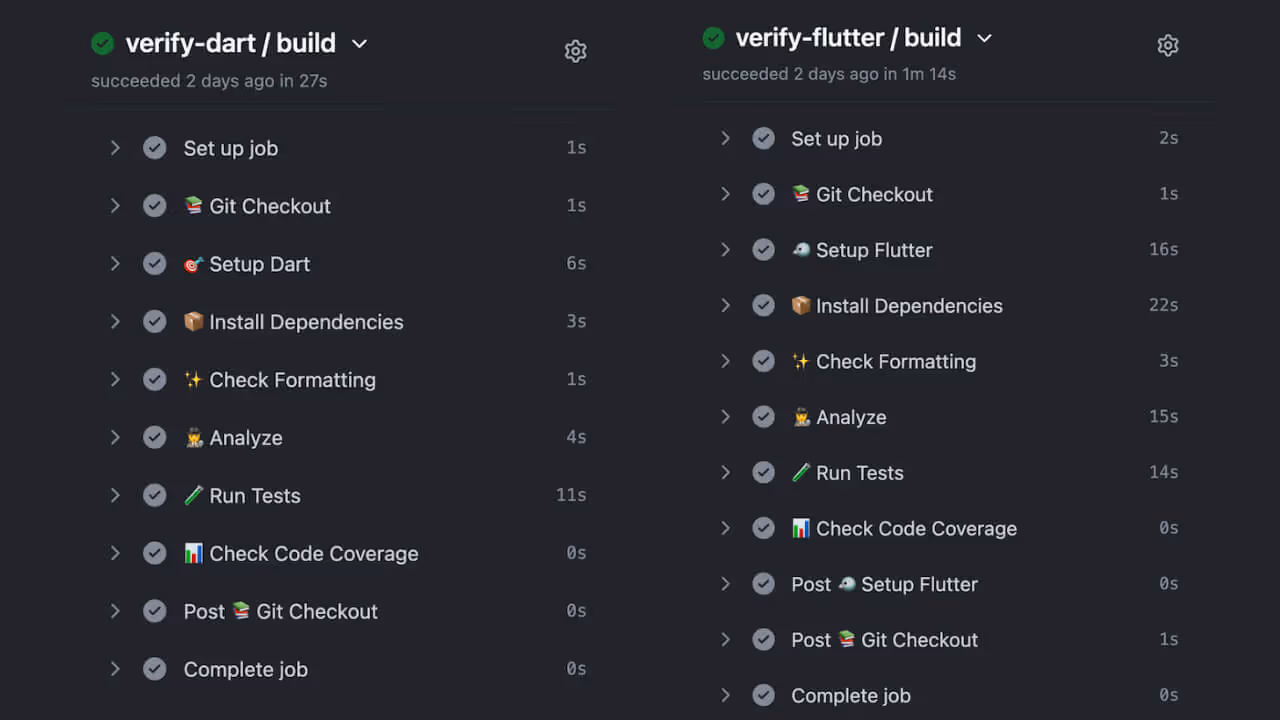 We're very excited to continue to expand Very Good Workflows to include more functionality such as pub.dev score verification, build_runner verification, and more!