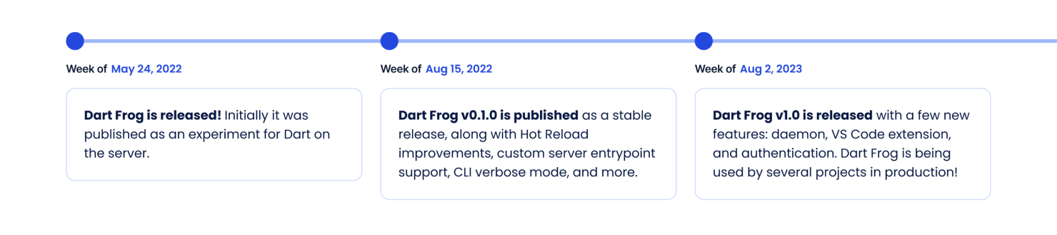 We’ve been blown away by the reception of Dart Frog since its initial release in May 2022! It was first released as an experimental backend framework, and after a few months, we upgraded it to stable with a few key features and bug fixes. Dart Frog has since been used in multiple projects in production, including the AI-designed card game I/O FLIP and Flutter News Toolkit. It has also gained over 1,400 stars on GitHub and been incorporated into many articles, tutorials, and conference talks.