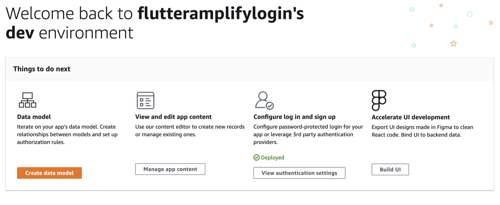 You can check that everything is setup correctly if you sign into your AWS account and search for AWS Amplify. There you are going to see your project and the creation date.