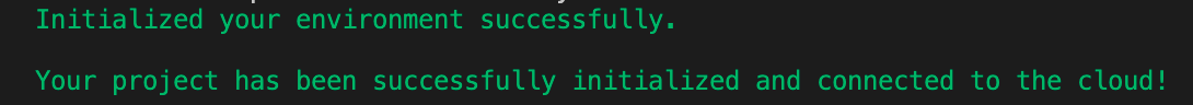 After finish the form, you should receive this success message. This means that your project is successfully initialized in the cloud.