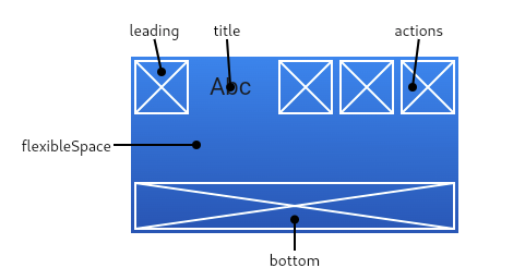 - AppBar: A material design app bar that can include a title, icons, actions, and more. It’s commonly used as the top bar in an app to provide navigation and actions.