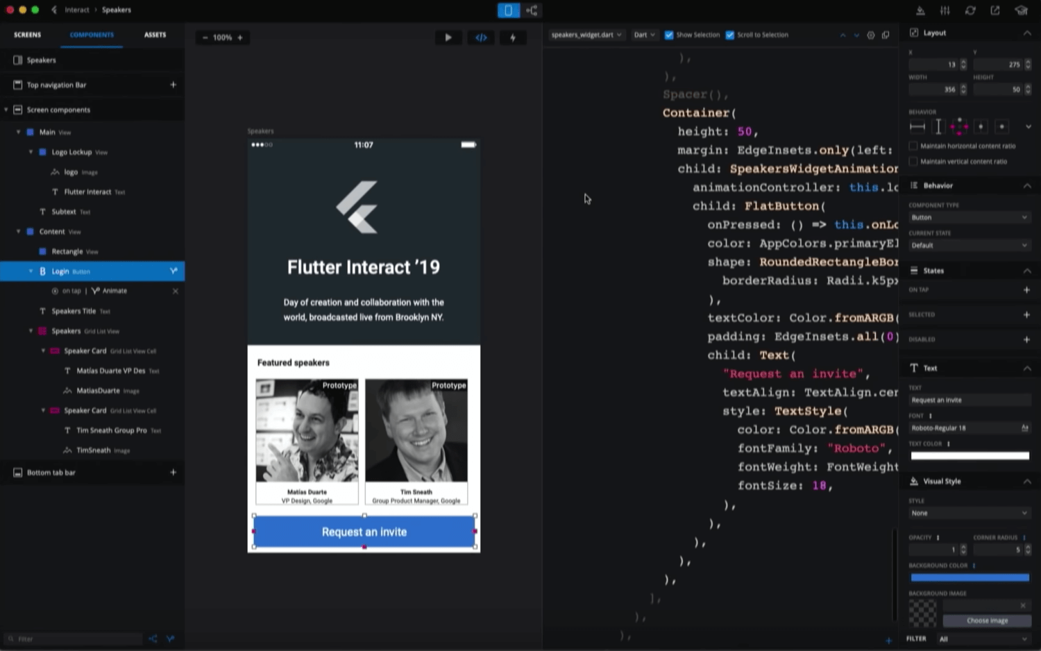 Along the same lines of designer-developer assimilation is Adobe Ex’s open source Flutter plugin. Which allows for direct manipulation of Dart code through Adobe XD. This plugin will generate code for any selected component in XD. Not only will it generate the code, but the designer can also make changes in Adobe XD and after running the Flutter plugin, code changes will be reflected immediately. This plugin is now available for early access, sign up here.