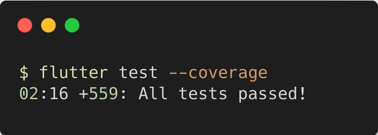 In order to build a custom test command, we first needed a way to programatically run tests that would fit nicely with our existing tooling for Very Good CLI. As a result, we created the Very Good Test Runner package which provides APIs to run Dart and Flutter tests programatically thanks to the JSON Reporter Protocol.