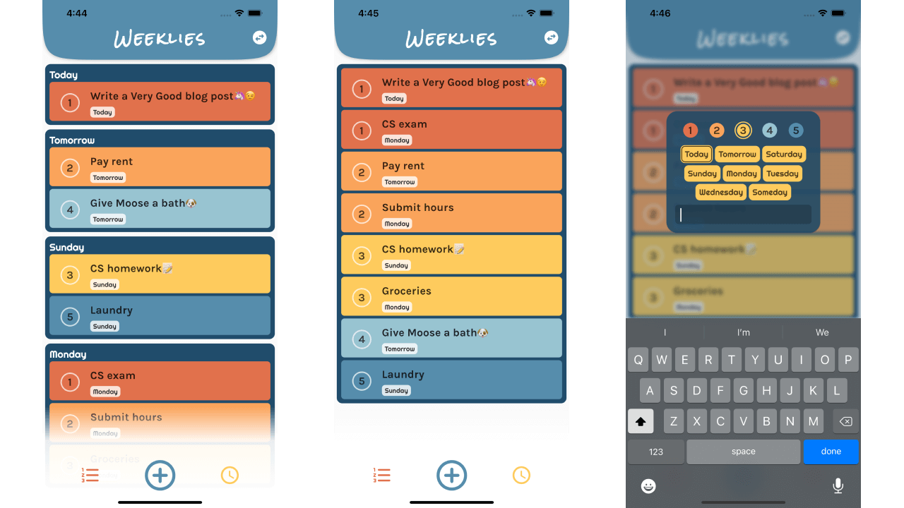 Screenshots from Allison’s personal project: a to-do app