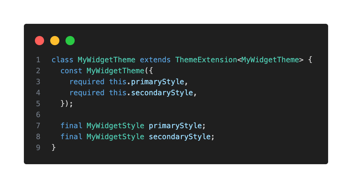 To truly integrate your custom widget styles into your app’s overall theme, I highly encourage you to use ThemeExtension. This powerful feature allows you to extend the ThemeData class with your own custom styles, providing a centralized and reusable way to manage them throughout your app.