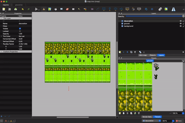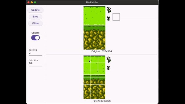 To make our life easier, we developed a small tool called Tile Patcher that given a tileset, it will automatically add the spacing for all the tiles. Lets see it in action:
