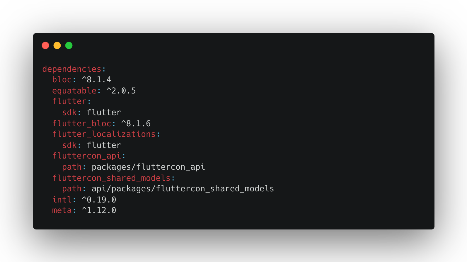 Putting all of this authentication and data logic in Dart Frog makes our frontend lean and simple. Here is the pubspec for the frontend app, demonstrating how few dependencies are required when Dart Frog handles the heavy lifting: