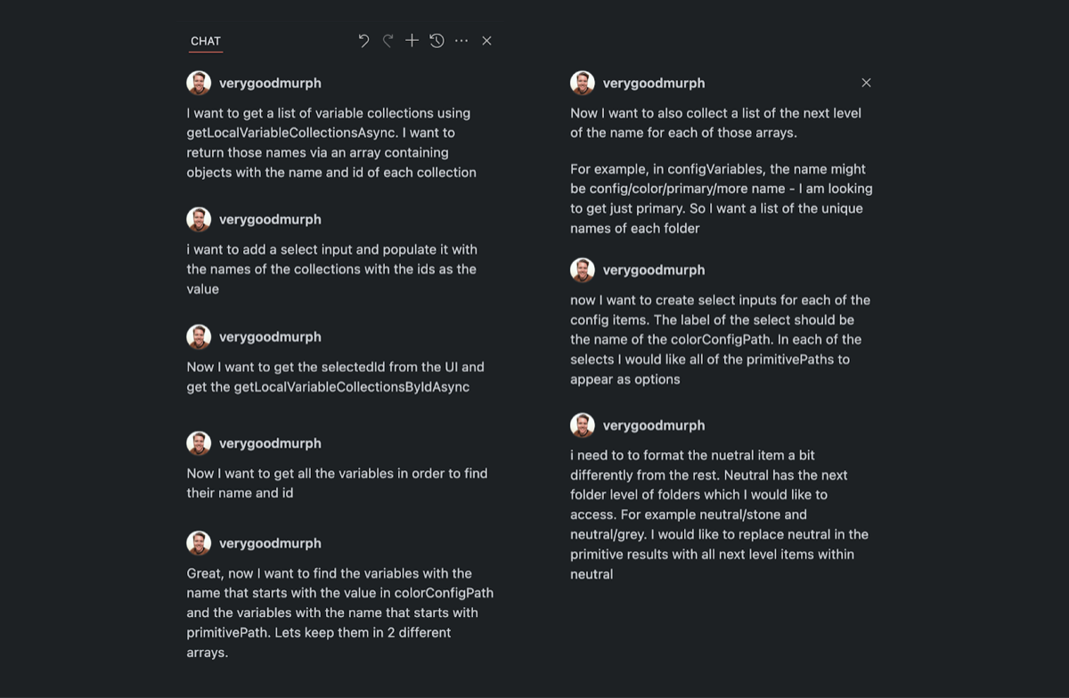 That plugin took me weeks to build manually; I used ChatGPT, hacked around, and honestly had little confidence about the best way to approach the implementation. But I managed to get it working! And adding Dev Mode support made it helpful for both designers and devs. It automated a tedious task and made our handoffs faster and more accurate.