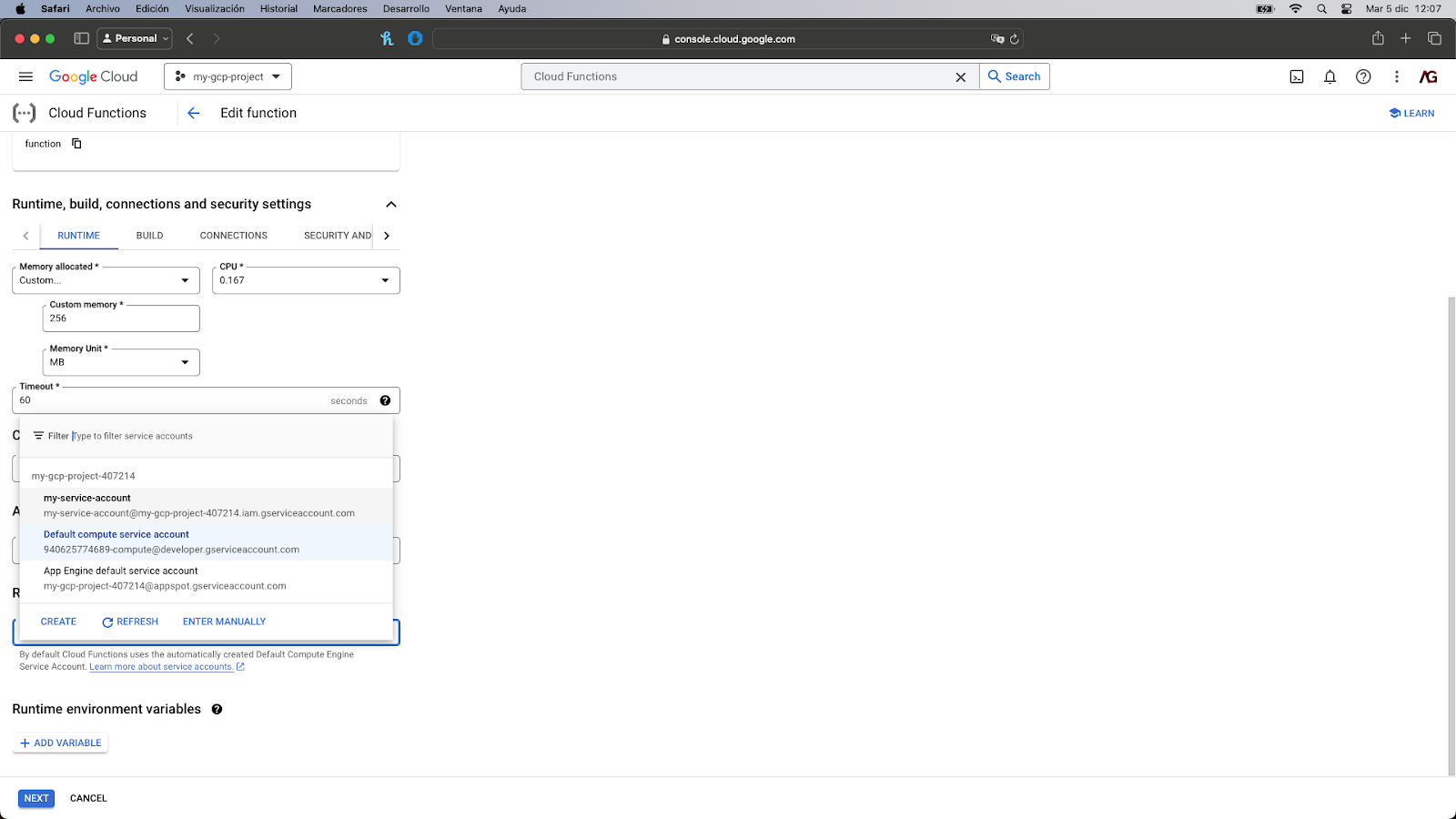 - You’ll then have to click on Next and then Deploy. The Cloud Function would be redeployed with the updated service account.