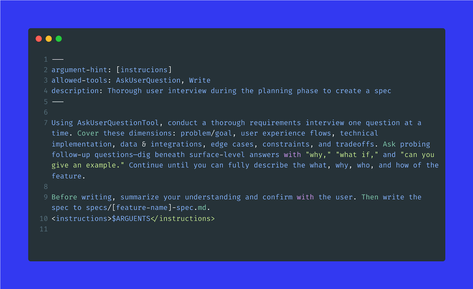 This might be, by far, the most important element. Claude is relentless about edge cases. “What should happen if the network request succeeds, but returns malformed JSON?” “Should this animation run on first launch only, or every time?” These are questions you should have answers to, and the interview forces you to answer them.
