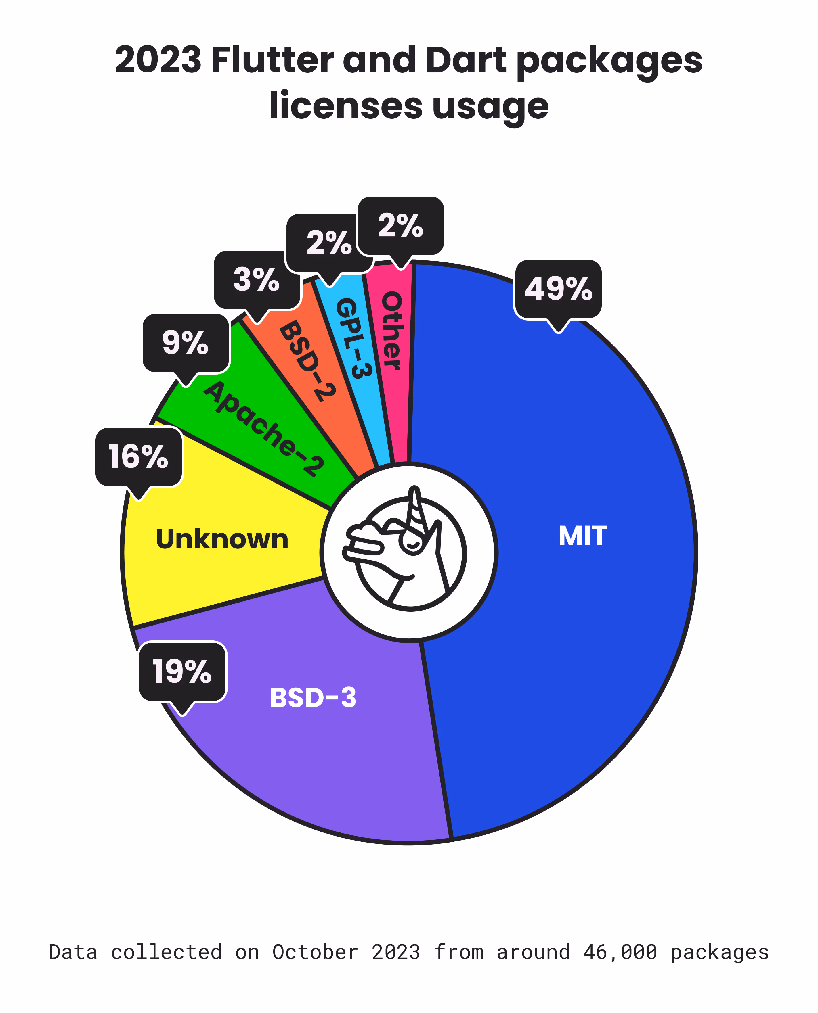Dart's package manager relies on PANA (short for PAckage aNAlyzer) to determine the license specified by the package author for their published package. It does so by scanning the license text specified by the package developer and comparing it with common licenses. If no confident match is found, it is reported as 'unknown.'