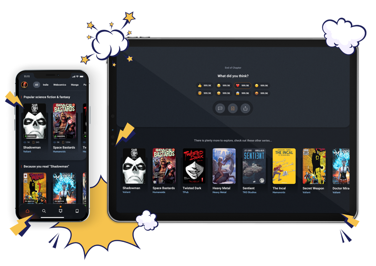 High-quality visuals adapted for mobile devices, across various comic formats.